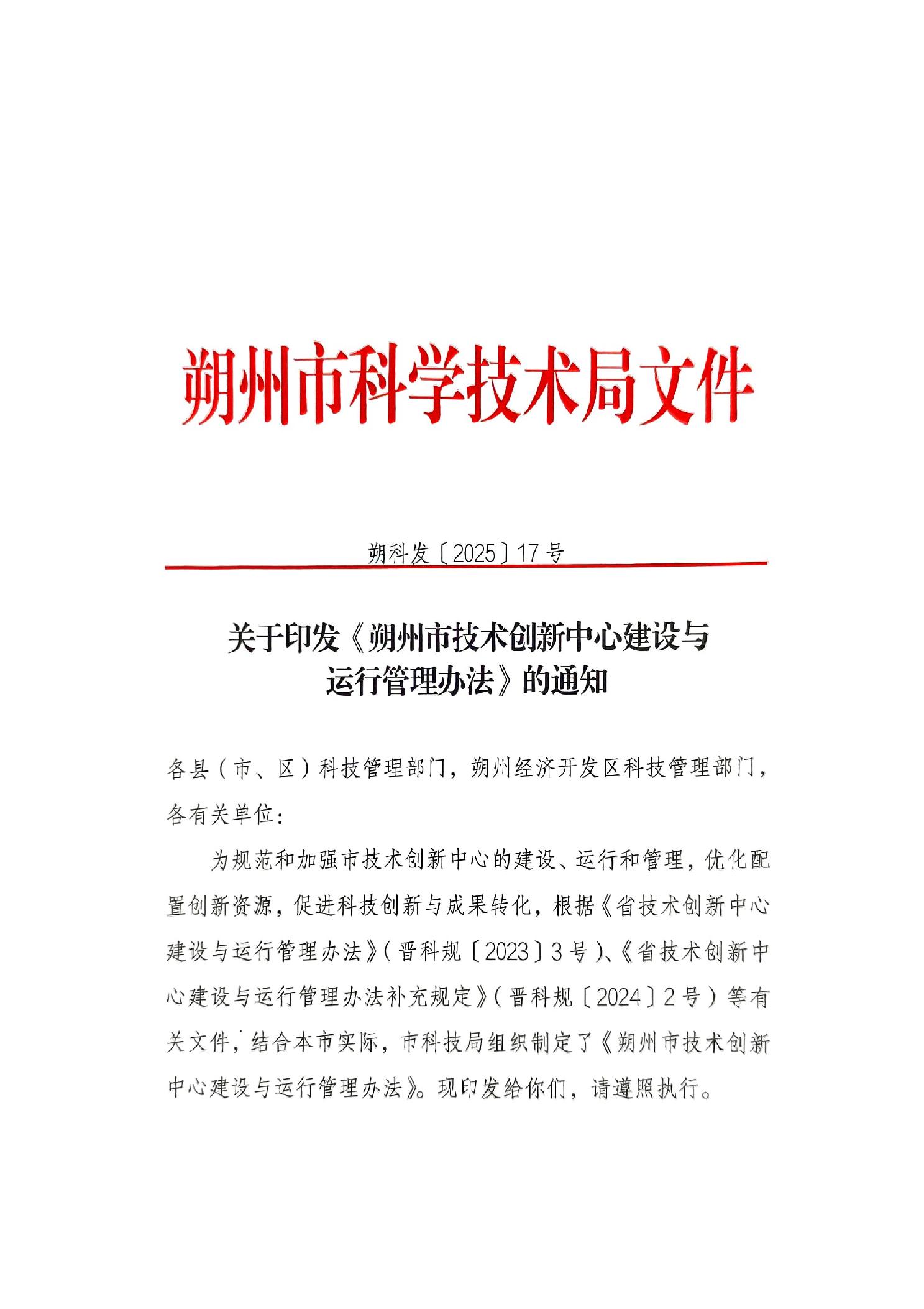 关于印发《朔州市技术创新中心建设与运行管理办法》的通知