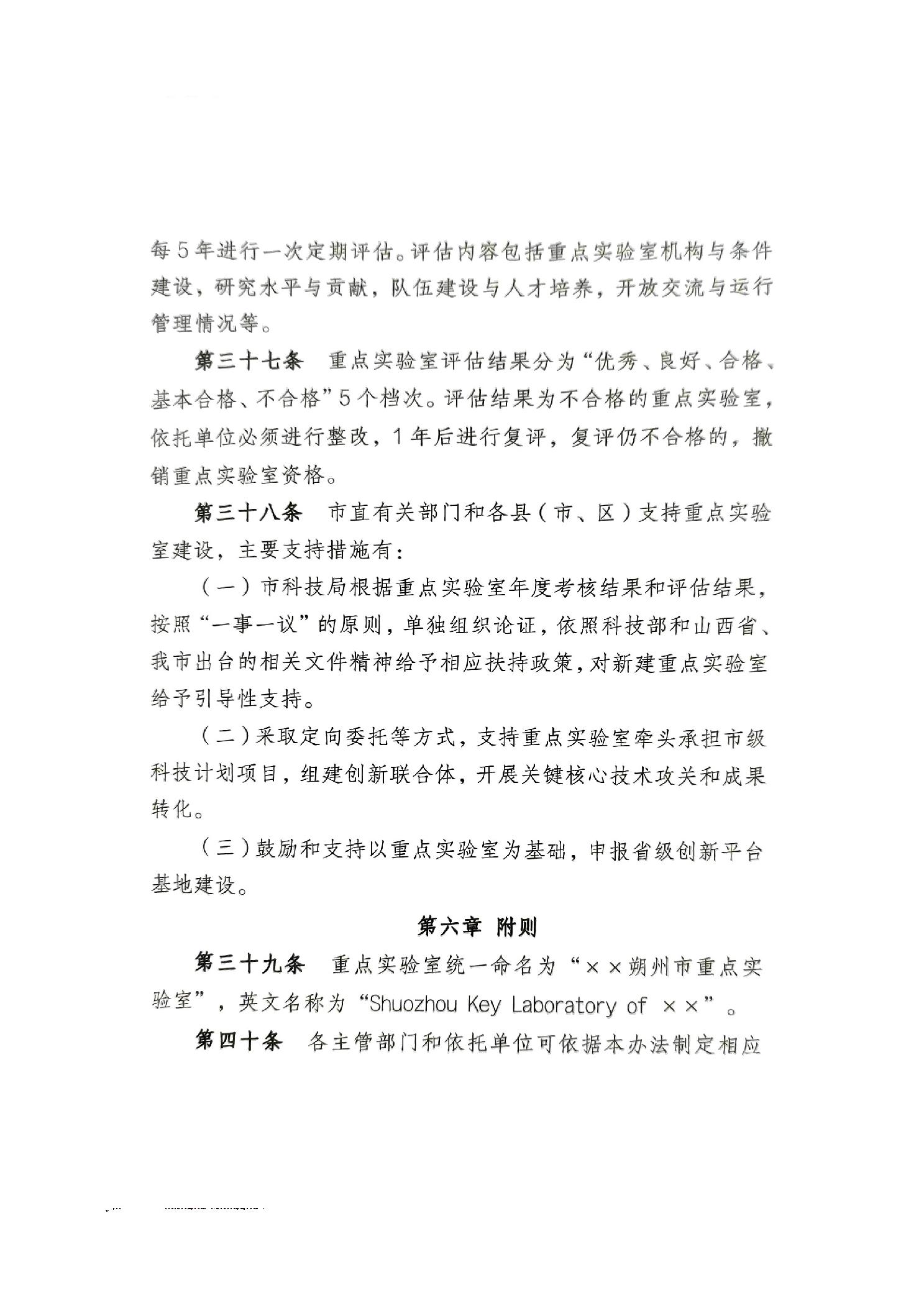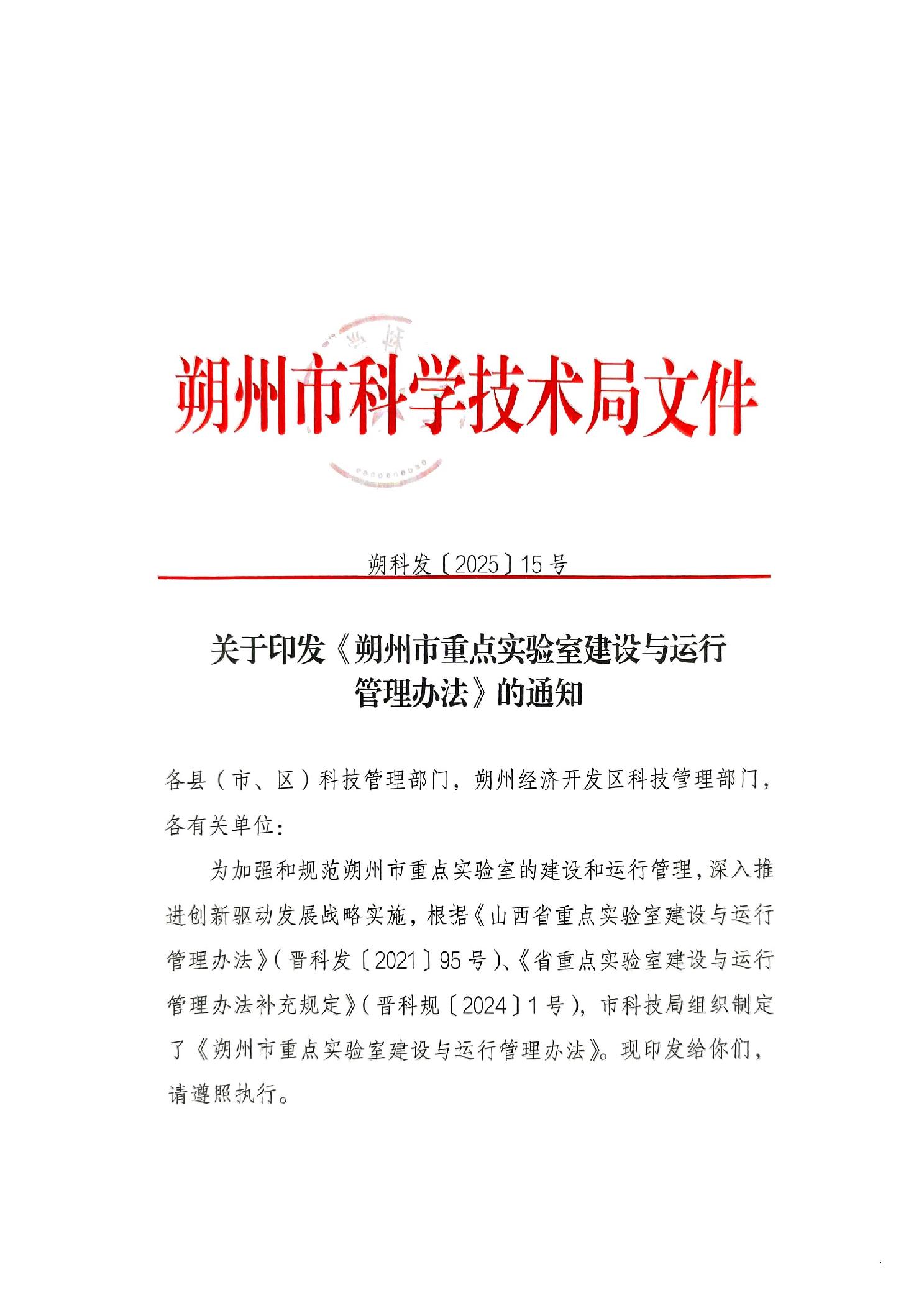 关于印发《朔州市重点实验室建设与运行管理办法》的通知